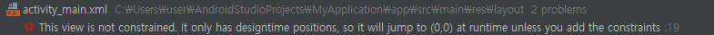 안드로이드 스튜디오에서 팔레트를 통해 아이템을 직접 끌어서 레이아웃을 구성하는 경우, 아래처럼 오류가 뜬다.