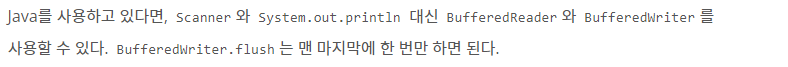문제에서도 다음과 같이 Scanner 대신 BufferedReader/Writer를 사용하라고 적혀있다.