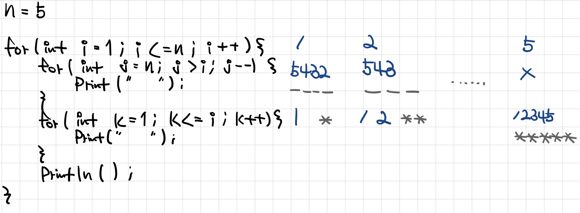 for(int k=1;k<=i;k++) { // 1 2 3 4
