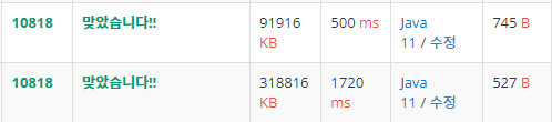 위가 BufferedReader, 아래가 Scanner를 사용했을 때이다.