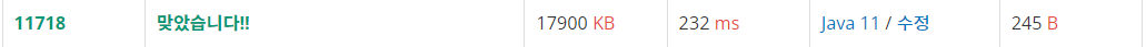 +) 공백을 포함한 문자열도 그대로 출력해야하기 때문에 공백 전까지의 문자열을 받는 next()가 아닌 nextLine()을 이용하였다.